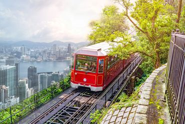 Ride the historic Peak Tram, Hong Kong’s century-old funicular railway, climbing steeply toward Victoria Peak. As you ascend, you’ll witness the famous “Peak Tram Paradox” — skyscrapers appearing to tilt due to the gradient.
